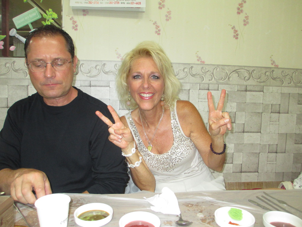 Here are a couple photos of how we spent the 1st International Dress for Peace Day!!! Jim and I were in South Korea visiting Christopher (our son). We got in the spirit!!!