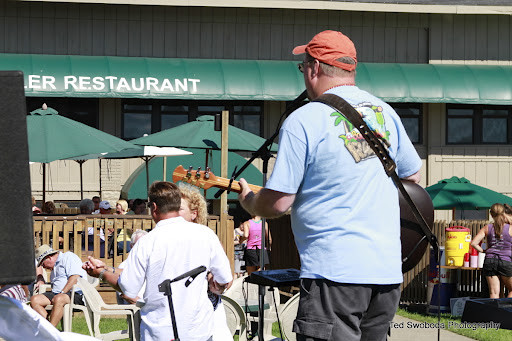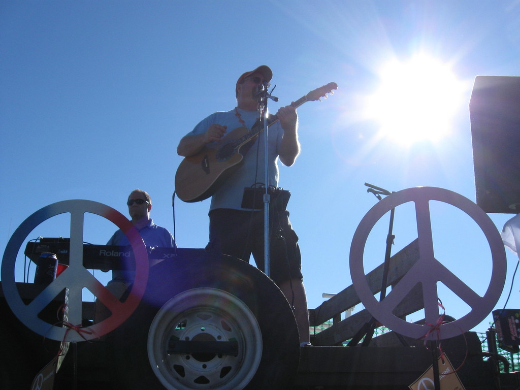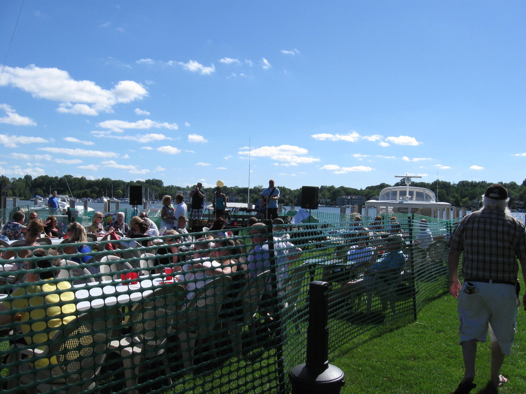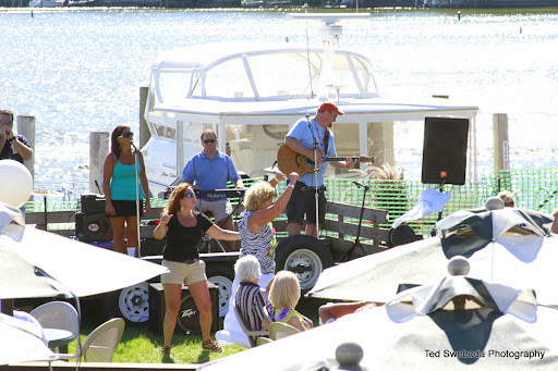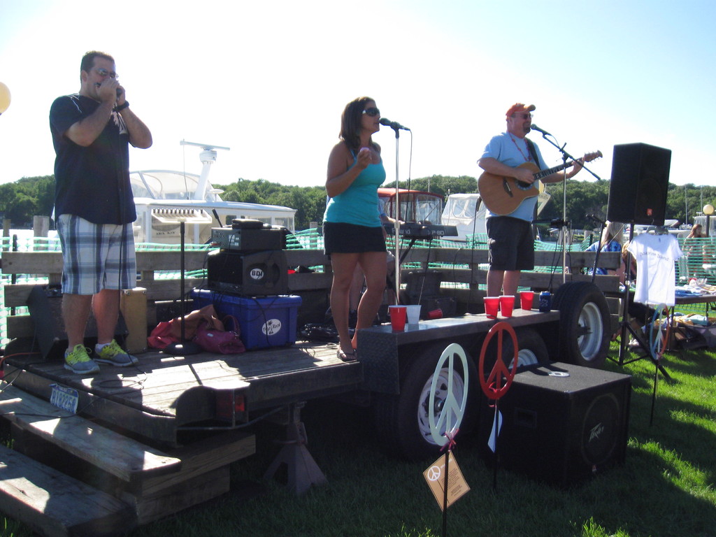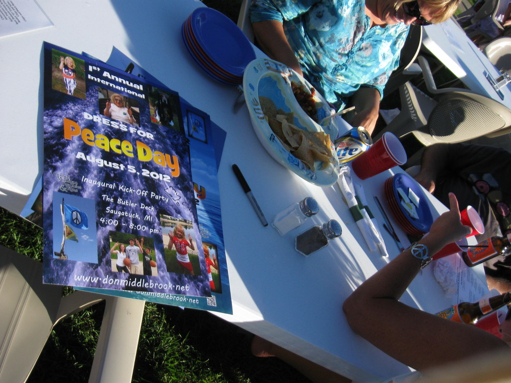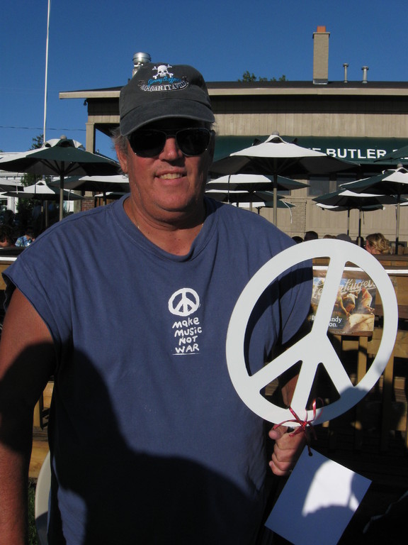The Inaugural International Dress for Peace Day celebration in Saugatuck's Cook Park, near The Butler Deck, saw event founder and musician Don Middlebrook (upper right with guitar) and his band Living Soul perform for partying pacifists in the sunshine. For more about the occasion, visit www.donmiddlebrook.net. (Photo by Ted Swoboda, TedSwobodaPhotography.com)